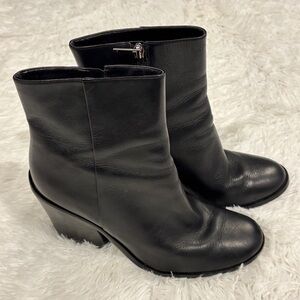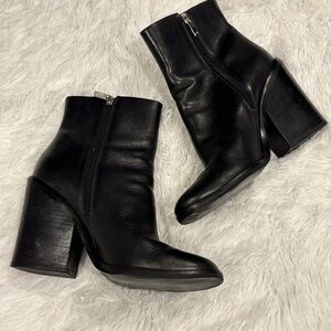 Marc Fisher Black Leather Block Heels Booties Woman’s Size 10