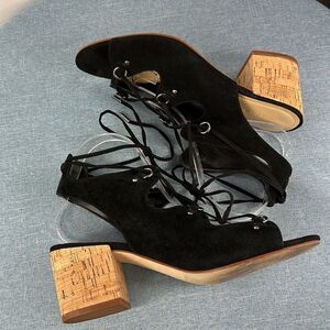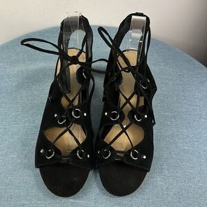 Marc Fisher Rivva Black Leather Lace Up Heels Size 10 M