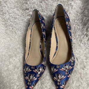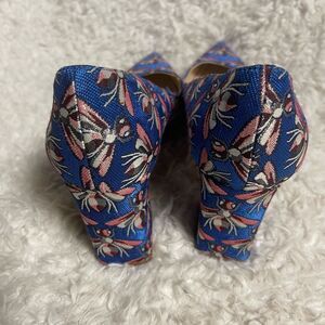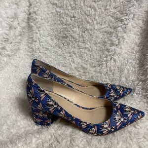 Marc Fisher brocade fabric royal blue colorful flies print block heels SZ10M pointed toe leather soles . Pre owned in good used condition signs of wear on the soles see all pictures any questions please message.