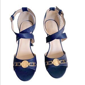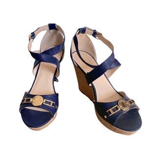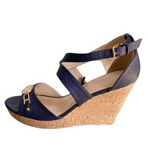 Marc Fisher Brantor Navy Blue Wedge Sandals Size 10