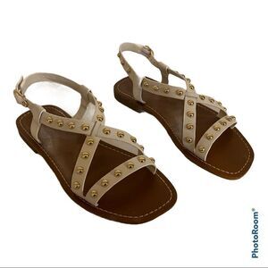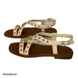 Marc Fisher Ivory & Gold Studded Leather Fianna Sandals - NIB