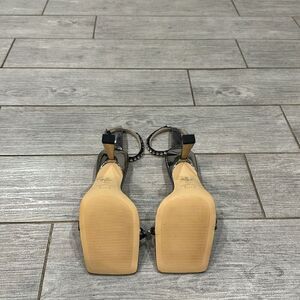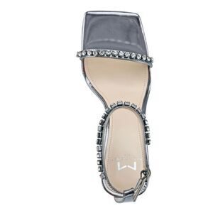 Brand new without box! Beautiful shoes that will make any outfit! Jewel embellishments accentuate the slim straps of a metallic leather sandal framed by a sleek squared toe and flared heel.