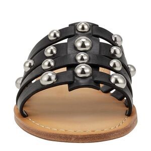 Leather strappy open toe slide sandals with rounded stud embellishments