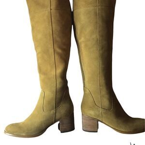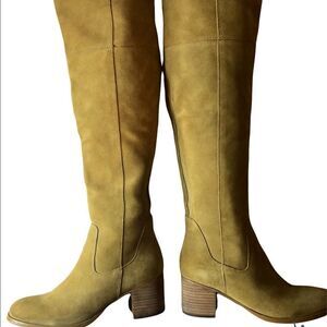 Above the Knee high boots one pair and camel and one pair in black. in the back of the boot it does have elastic insert for comfort. shaft & heel is 20.5”, opening 18”. in great shape. Worn 2 times. The post is for one pair of boots camel or black. Shoe size 6 1/2.