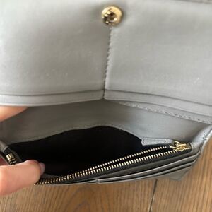 Elegant gray leather wallet with a sleek design. Perfect for organizing your essentials in style.