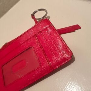 Marc Jacobs Keychain Cardholder Zip Top Wallet Red Leather Logo Front