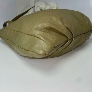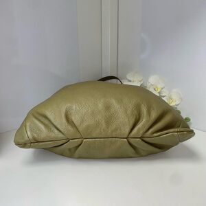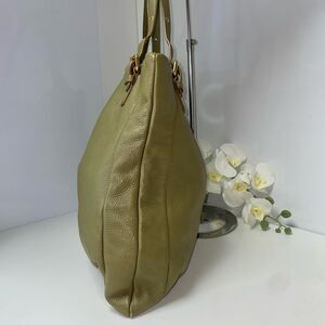Step into fall with this Elegant khaki green leather tote by Marc Jacobs. Spacious and stylish for daily use. Gold-tone hardware adds a touch of luxury.