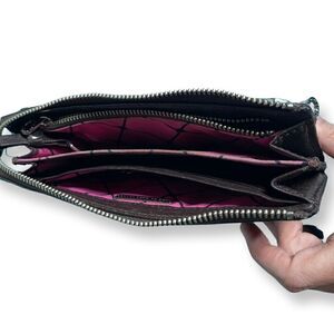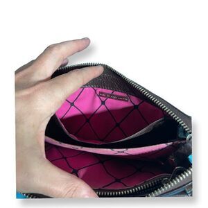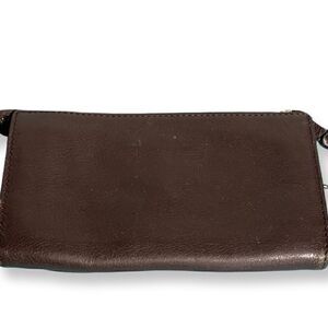 This is small- stylish and casual. Real burgundy leather with working zippers …