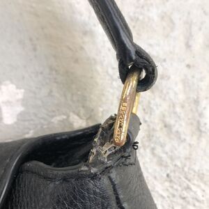 This is a nice leather bag. It’s in good condition, but does need some reconditioning that I show in pictures. One side of the shoulder strap was repaired. It should be repaired. Brass has tarnished