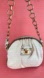 * Crafted of fine polished leather in cream color, with gold tone hardware.