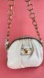* Crafted of fine polished leather in cream color, with gold tone hardware.