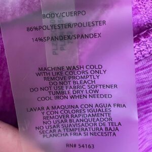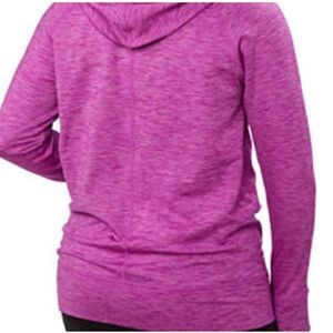 Performance polyester blend. Purple Fluorite color, kangaroo pouch pocket, drawstring hood.