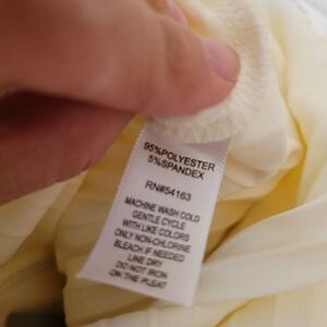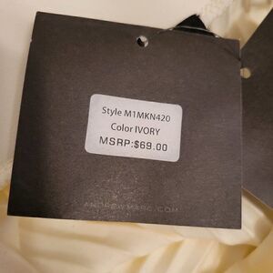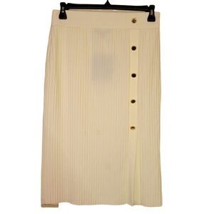 Lovely ivory color, elastic waistband, rib-knit, gold tone button-up, slit, cut for slim fit, stretch fabric. There is a small stain on the skirt, is barely noticebale but is there, can you spot it? This skirt is perfect for looking great and feeling comfortable, pair it up with a slim sweater or your favorite top. NWT