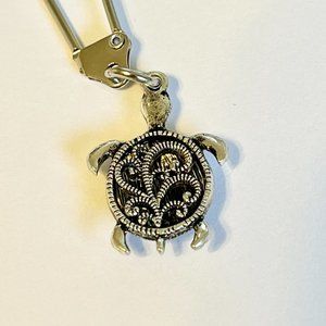 Marcasite Crystal Turtle Keychain Zipper Pull Purse Charm Backpack Silver Plated