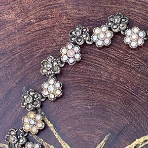 Marcasite Floral Link Bracelet in Sterling Silver Jewelry Gift