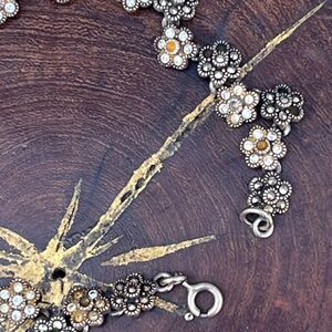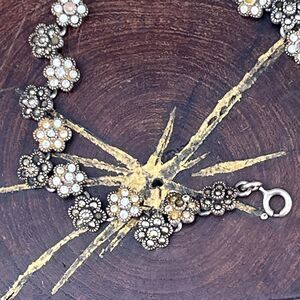 Vintage marcasite florsl sterling silver bracelet. Gorgeous marcasite tiny sparkle in a link bracelet. Perfect little statement piece. No makers mark. Missing some stones and priced as is. Spring ring clasp.