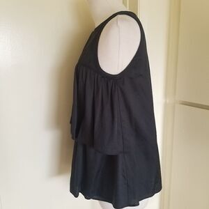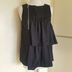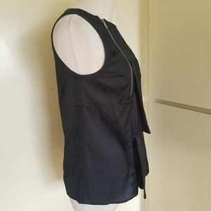 Black viscose and cotton Sseeveless assymetrical top. Opening is a silver zipper on the right front of this gorgeous
