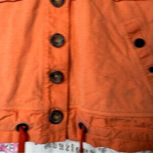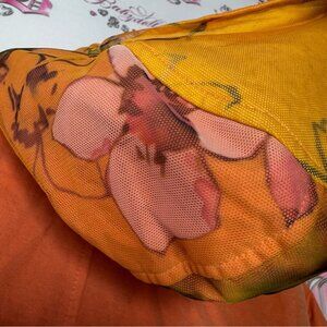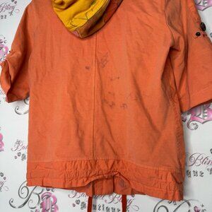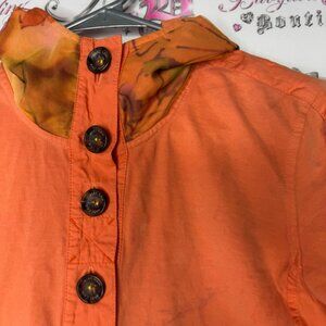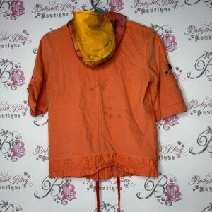 Marccain sports sweater 3/4 sleeve orange tie dye buttons floral hood mesh y2k