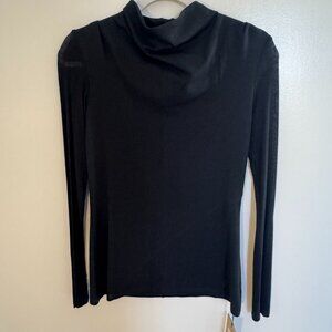 Marcella NYC “Melissa” Black Mock Neck Top w/ Sheer Long Sleeves — Size S (NWT)