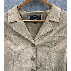 Marcelle Renee Leather Jacket Womens Large Tan Notch 5 Button Style 2119