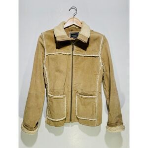 Marcelle Renee leather jacket sherpa suede coat faux tan vtg Y2K country women M