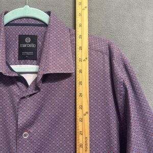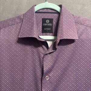 Marcello Geometric Pattern Button Up Dress Shirt Mens Size Large Performance Microfiber Red Blue