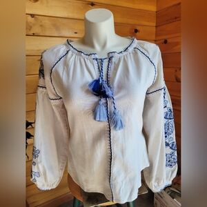 March 11 Amazing Embroidered 100% Linen Blouse Size Small
