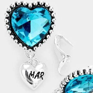 March Birthstone Heart Dangle Clip On Earrings NWT