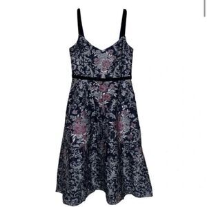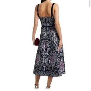 Marchesa Black Metallic Floral Fit and Flare Cocktail Midi Dress | 10