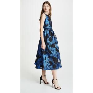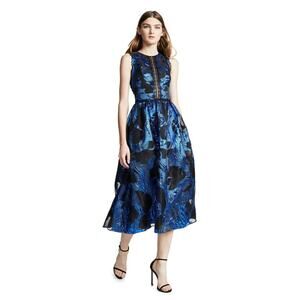 NEW Marchesa Fil Coupe Metallic & Lace Midi Dress Cutout Back Sz 0 Sleeveless Fit & Flare, Blue / Black