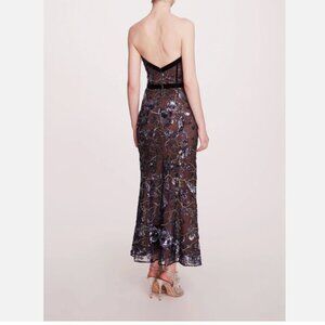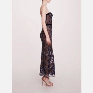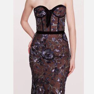 Make a stunning impression with the Climbing Vines Midi Dress, featuring a sleeveless design adorned with exquisite sequin floral embroidery on delicate tulle. The corset-style velvet detailing on the bodice accentuates your figure, offering a perfect blend of sophistication and allure.