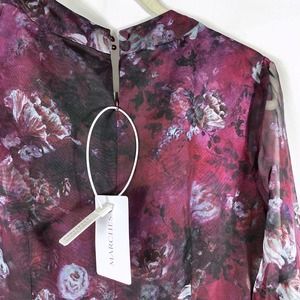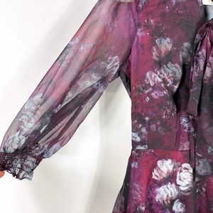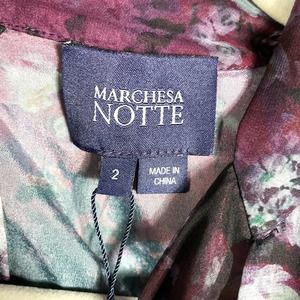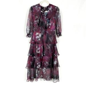 New Marchesa Floral Printed Chiffon Tiered Midi Dress Purple Neck Tie Sz 2 Women