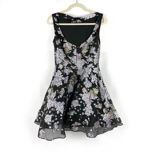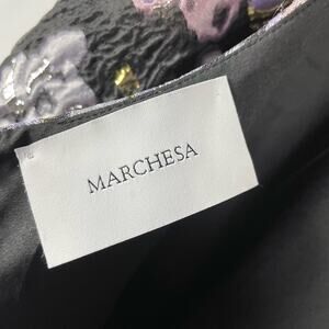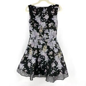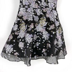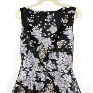 Marchesa Floral Jacquard Cocktail Dress Black Metallic Fit and Flare Mini Sz 6