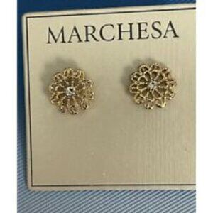 ITEM: Marchesa Gold-Tone Flower Crystal Accent Center Stud Earrings