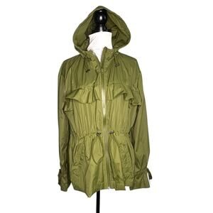 Marchesa Hooded Ruffle Rain Jacket Army Green Size Large