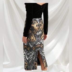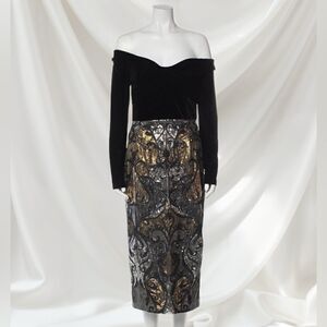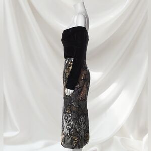 Marchesa Norte Off The Shoulder Long Sleeve Sequin Bottom Dress