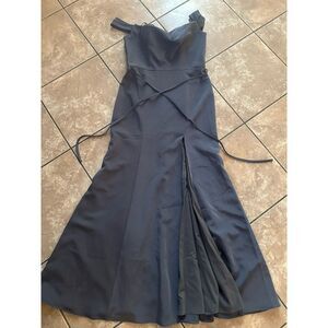 Marchesa Notte 6 Maxi Gown Dress Graphite Grey Front Slit