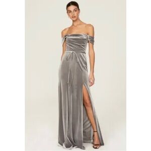 Gray velvet (100% Polyester). A-line. Sleeveless. Sweetheart. Back zipper closure. See size and fit notes for length measurements. Imported.