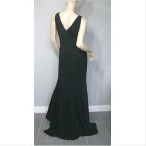 Marchesa Notte Black V-Neck Crepe Gown Dress 10