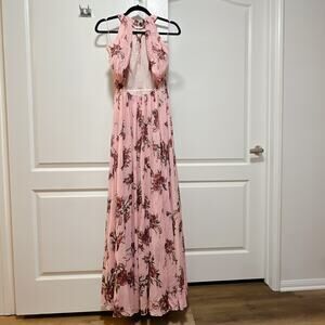 Marchesa Notte Blush Floral Halter Gown Open Back Maxi Dress