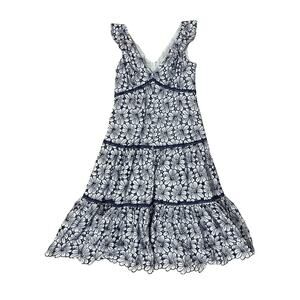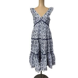 Marchesa Notte Broderie Blue Floral Print Anglaise Cotton Dress size 6
