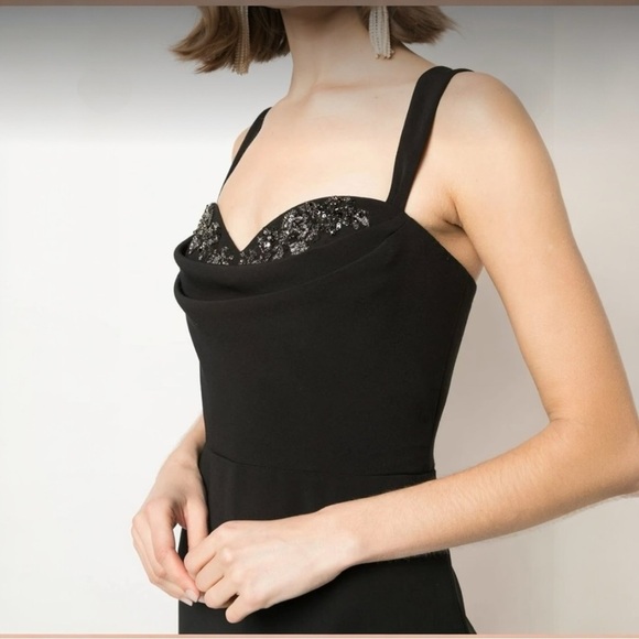 Marchesa Notte Crystal Embellished Cowl Neck Crepe Sheath Cocktail Below the Knee Mini Dress NEW Size 6