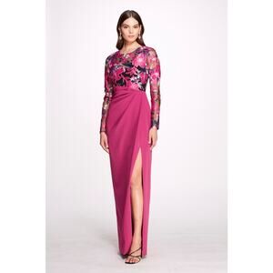 Marchesa Notte Cutout Embroidered Tulle and Crepe Gown Size 4