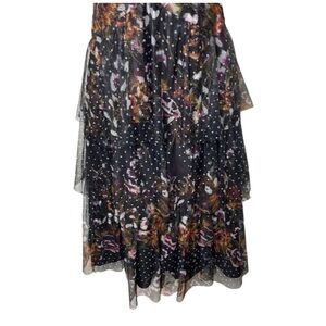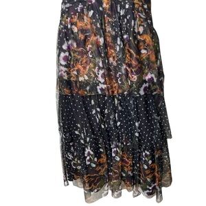 Marchesa Notte Dot Tiered Tulle Fliral Midi Dress sz 2