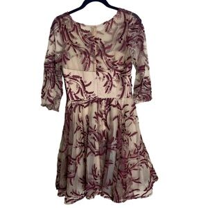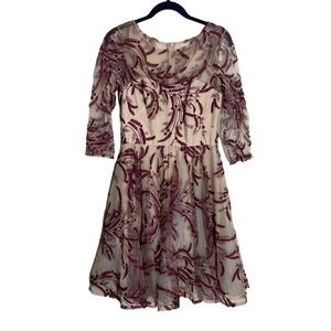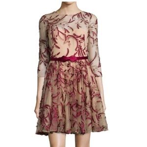 Marchesa Notte Dress Tulle Fit and Flare Embroidered Sheer A-Line size 6