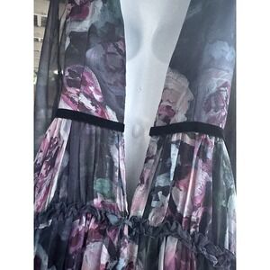 Marchesa Notte Floral Ribbon Waist Chiffon Tiered Midi Party Wedding Dress Sz 2