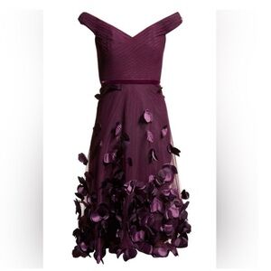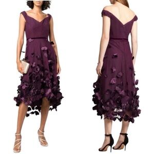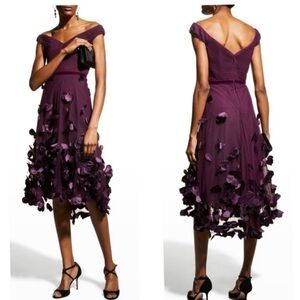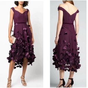 Marchesa Notte Off-Shoulder High Low Midi Gown Dress w/ 3D Flowers size 8 NEW