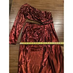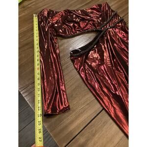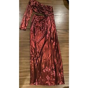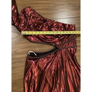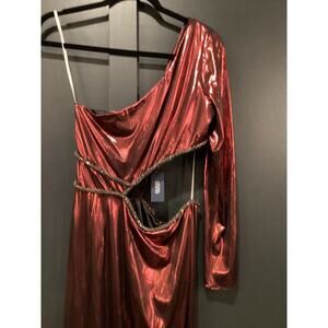 Marchesa Notte One-Shoulder slit Gown Metallic Red Cut Out Maxi Midi Dress 8 NWT