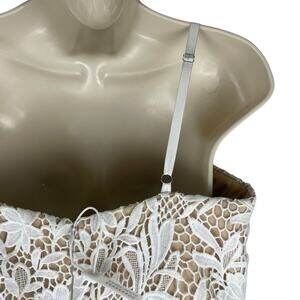 Style tags: Marchesa Notte, Satin‑Trim Gown, Guipure Lace Dress, Tulle Ball Gown, Bridal Evening Gown, Bow‑detailed Straps, Adjustable Spaghetti Straps, White Gown, Size 10 Women, Formal Occasion Dress, Wedding Guest Gown, Elegant Couture‑inspired, Lined Bustier, Hook‑and‑Zip Closure, Romantic Style, Old Hollywood Glam, Elegant Silhouette, Mid‑weight Lace, Structured Fit, Designer Gown