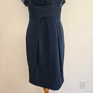 Marchesa Notte Silk Cocktail Dress Teal Flutter Sleeves Gathered Women 6